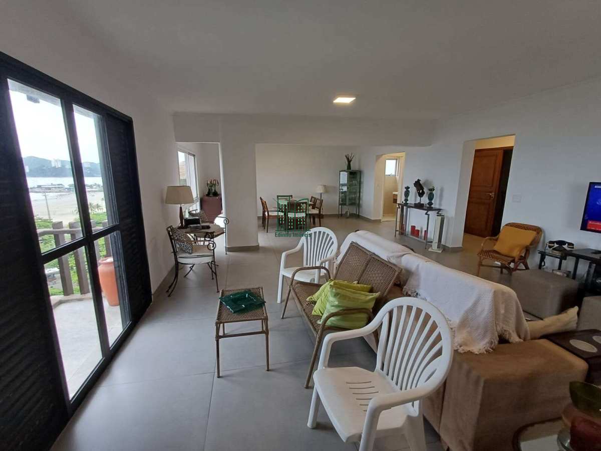 Vendo amplo 03 dorms., c/ 240 m² de área útil, 01 suíte, dependência completa, 01 wc social, 01 lavabo, de frente, linda vista mar, 05 varandas , elevador social e de serviço privativos, 02 entradas, sala 02 ambientes, ventilador de teto e ar condicionado na suíte, 02 vagas demarcadas no subsolo.