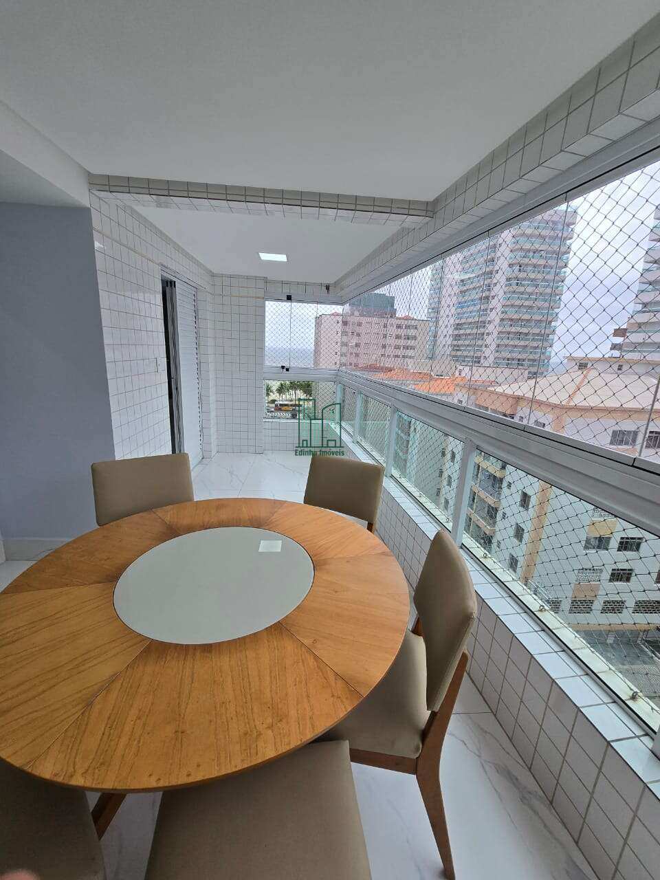 Amplo apartamento, com 116m2, a uma quadra da praia, no Bairro da Aviação , em Praia Grande - SP, andar alto, de frente, prédio de esquina, 03 Suítes, 02 vagas, ar condicionado nos quartos, armários embutidos, vista mar dos quartos e da sacada da sala, lazer total, portaria 24h e Mini Mercado