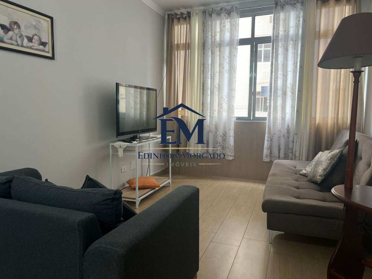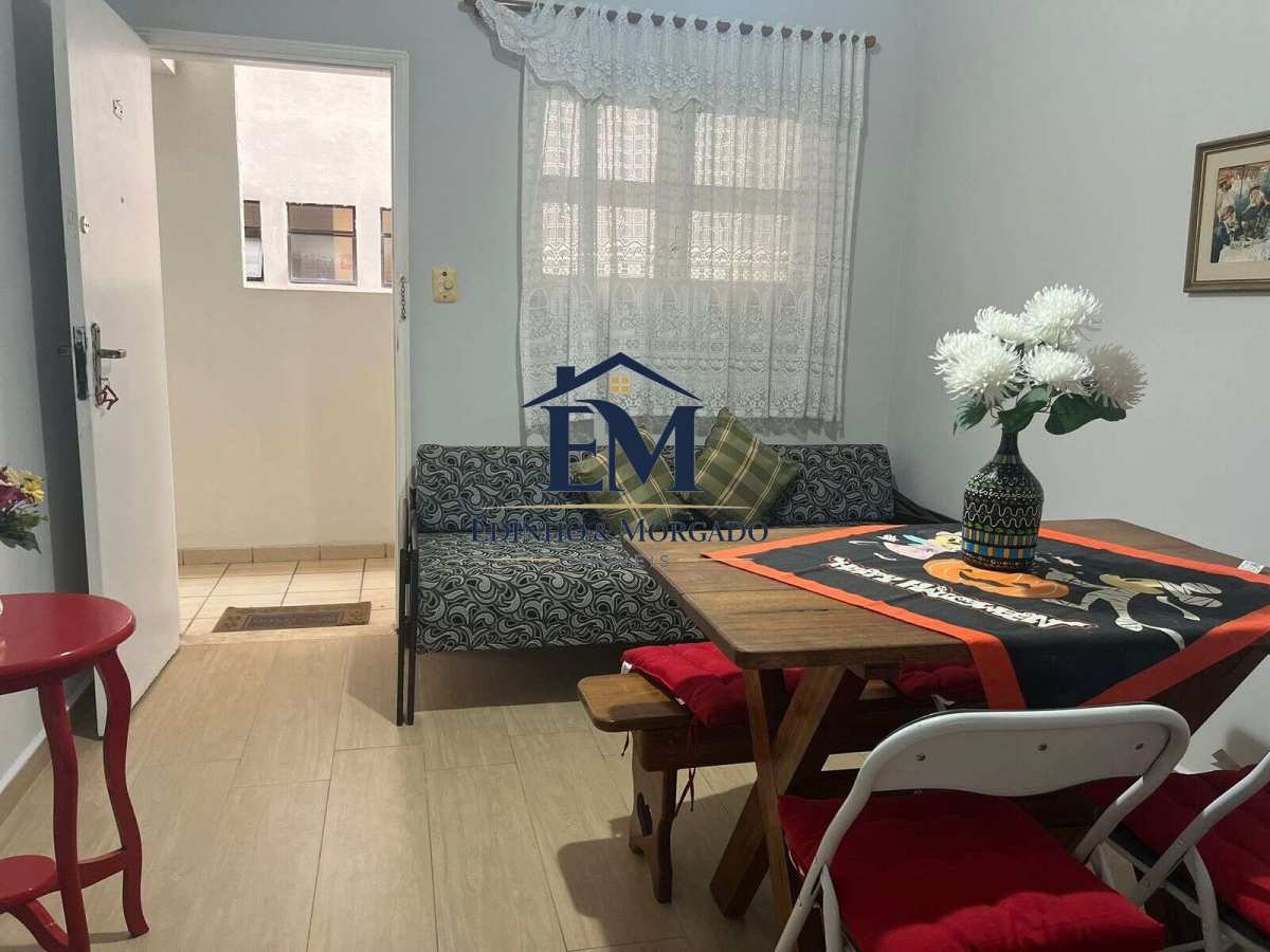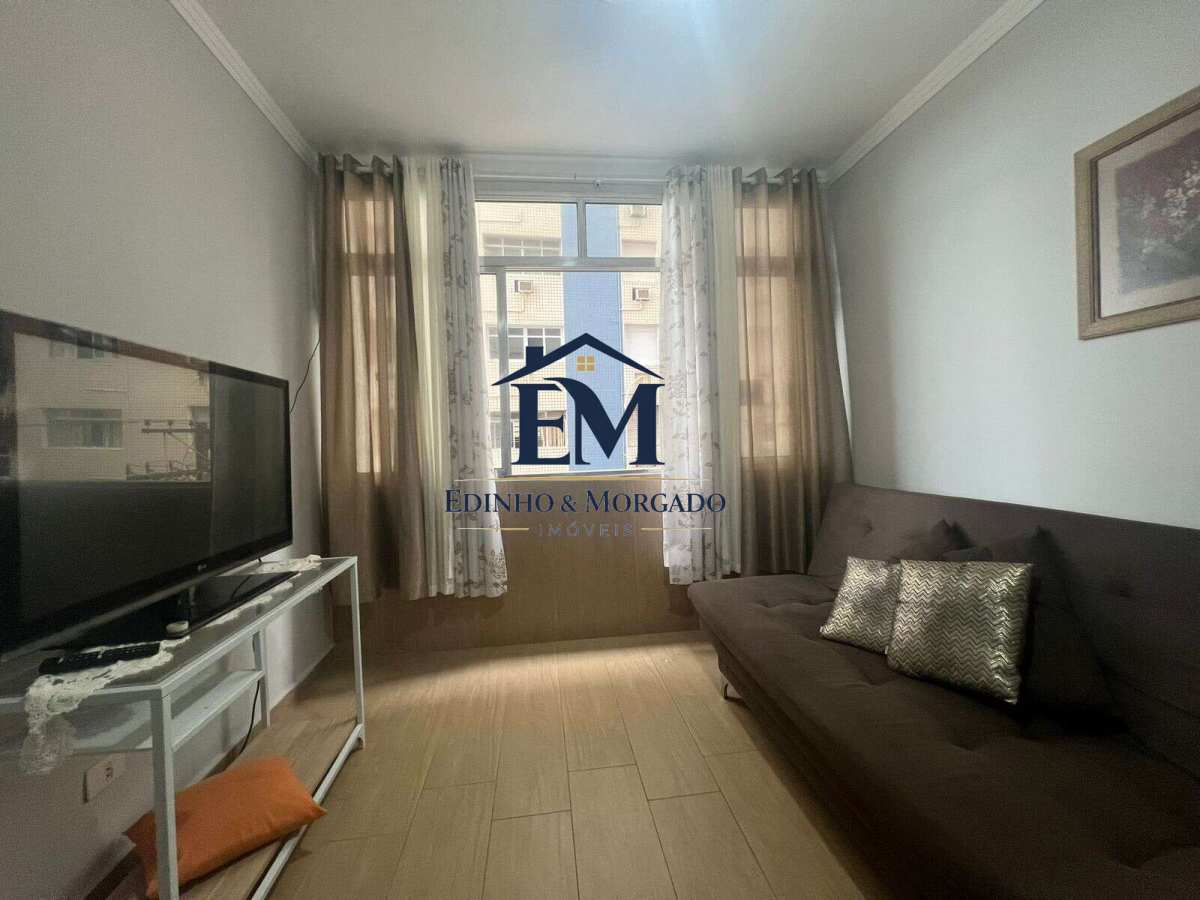 APTO à venda, no bairro do Gonzaga. Possui 01 dormitório bem espaçoso e vista parcial do mar, sala para dois ambientes também com vista pro mar, cozinha compacta, toda equipada, banheiro com box blindex, área de serviço, 01 vaga de garagem coletiva . MOBILIADO. Prédio com elevador e portaria 24 horas - Atenção Investidores : ACEITA AIRBNB.